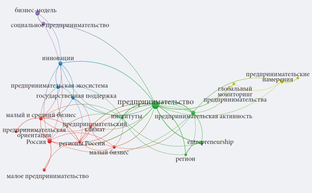 Рис. 2. Кластеризация публикаций по проблемам российского предпринимательства в ведущих научных журналах