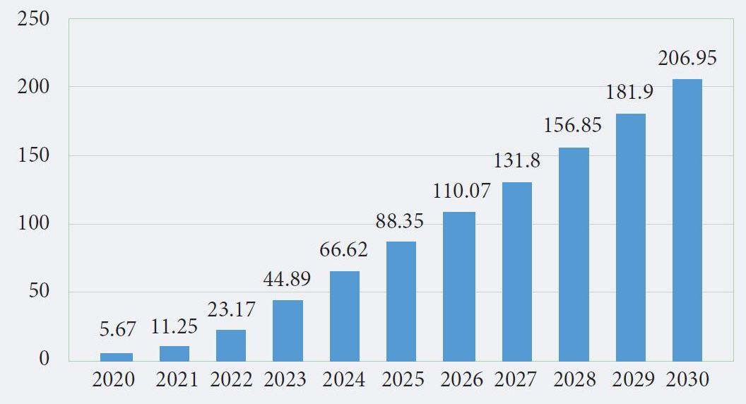 Рынок GenAI характеризуется стремительной динамикой развития. К концу текущего года его объем приблизится к 67 млрд долл., что почти втрое больше по сравнению с 2022 г., а к 2030 г. может достигнуть 207 млрд долл.1 (рис. 1). Российские организации тратят на технологии искусственного интеллекта (ИИ) 15% от общего объема расходов на цифровизацию2.