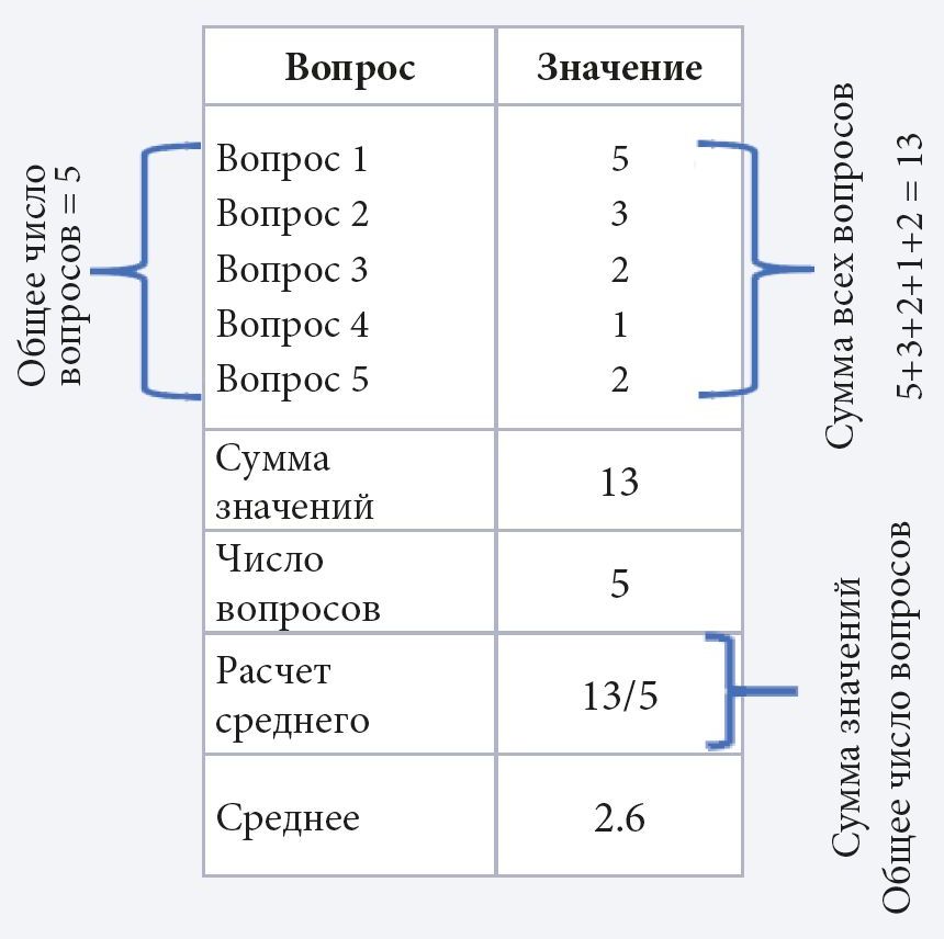 Затем мы перешли к определению оценочных критериев. Для конвертации ответов в количественную балльную оценку в моделях зрелости чаще всего используется шкала Лайкерта13. Был принят пятибалльный вариант шкалы, с выделением следующих уровней владения технологиями: 1 — «новичок» (beginner), 2 — «ученик» (learner), 3 — «середняк» (intermediate), 4 — «специалист», 5 — «топ-специалист». Уровень зрелости компании рассчитывается как средний показатель этих величин (рис. 4).