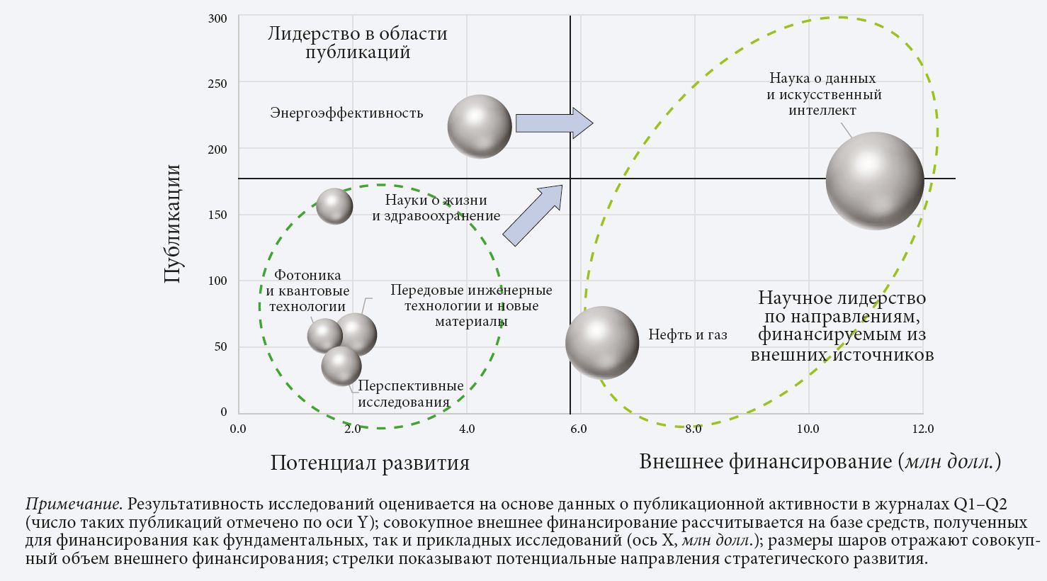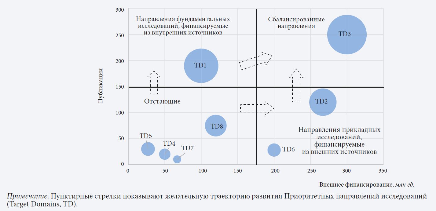 Рассматривая университет как портфель Приоритетных направлений, можно гибко корректировать исследовательские приоритеты, выполнять передовые ИиР и двигаться в направлении новых, зарождающихся научных областей.