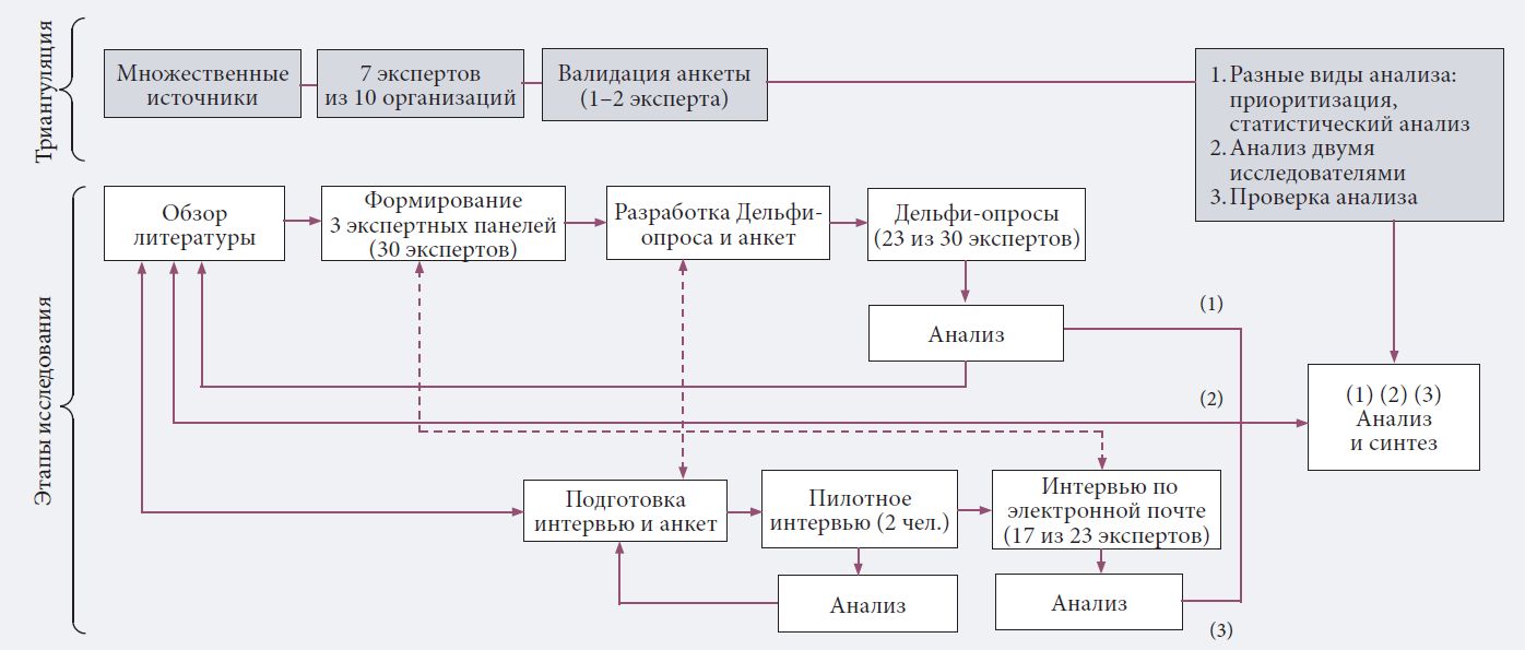 С учетом поставленных вопросов в исследовании применялись две стратегии. Задачей первой было обеспечить соответствие структуры и методов сформулированным вопросам. Методологическую основу работы составили экспертные панели, опрос Дельфи и интервью (Popper, 2008b; Miles et al., 2016). Экспертная панель как эффективный инструмент аккумулирования знаний для ответа на поставленные вопросы в нашем случае позволила выявить наиболее приоритетные для каждой технологии типы инноваций. Для этого необходимо было обеспечить сбалансированный, с точки зрения технологической и отраслевой специализации, состав экспертов. В отличие от масштабных обследований и других экспериментов тщательно подобранные эксперты, обладающие высокими компетенциями в инновациях, могут точнее приоритизировать их применительно к новым технологиям с учетом ресурсных ограничений, уровня зрелости и распространения последних.