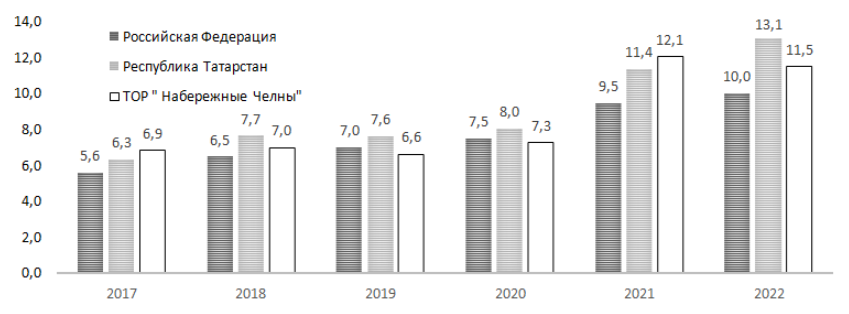 ТОР «Набережные Челны» | 9,0 | 9,0 | 9,5 | 9,9 | 10,6 |