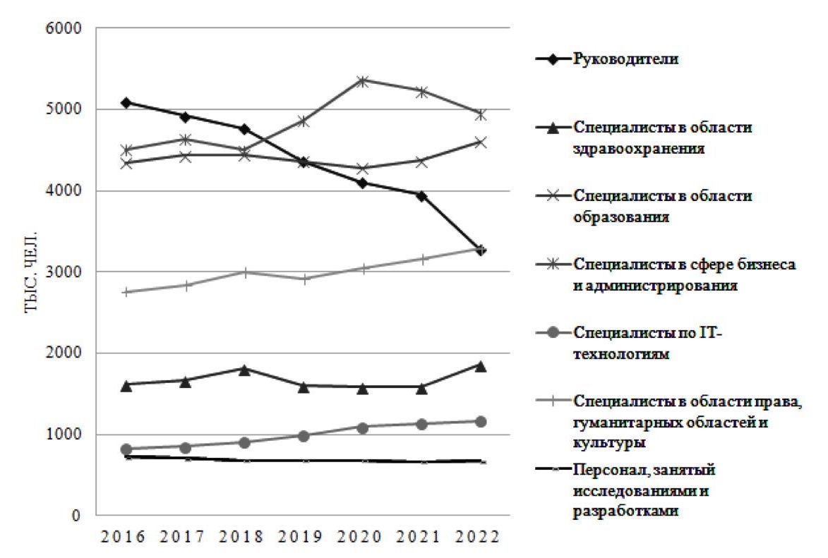 Рисунок 4. Изменение численности занятых среди специалистов высшего уровня квалификации в России в 2016-2022 гг.