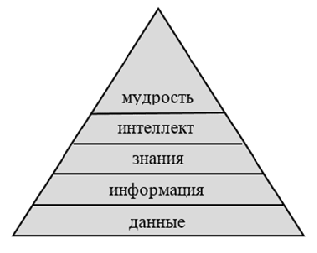 Рис. 1. Пирамида преобразований DIKIW: «данные, информация, знания, интеллект, мудрость»