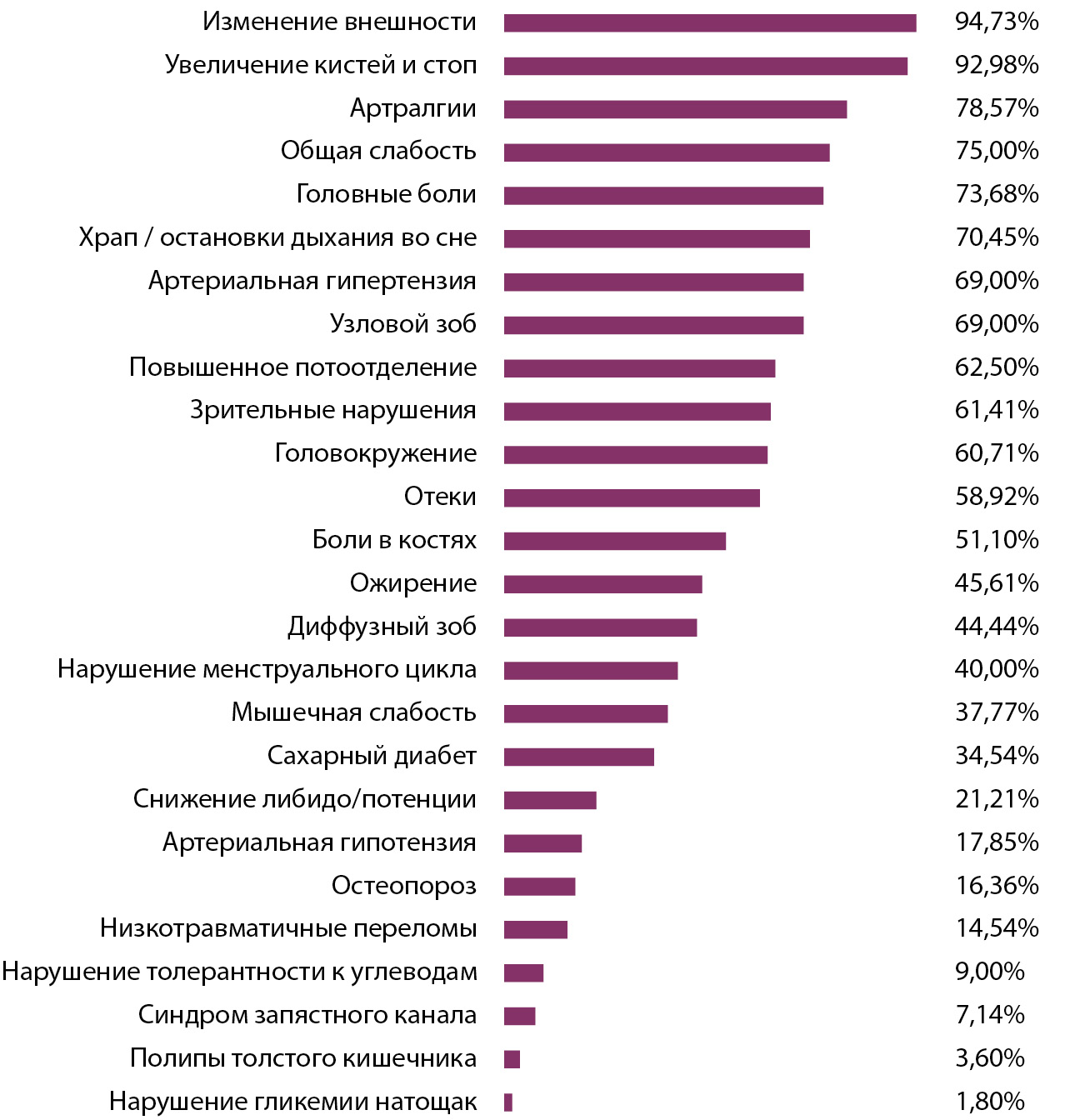 Клинические признаки акромегалии и их встречаемость по данным регистра УР представлены на рис. 1.