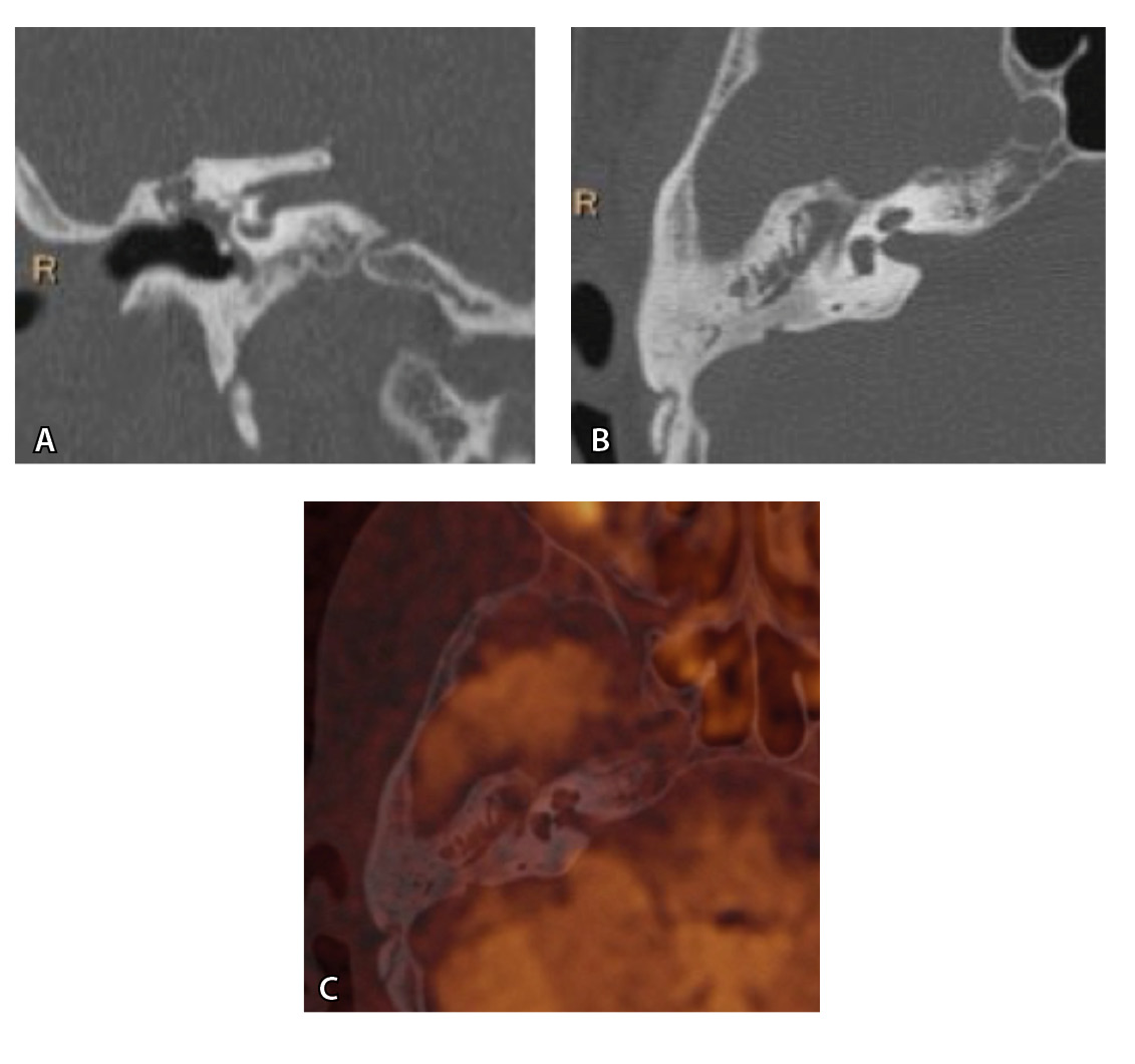 - Kosyakov SYa, Pchelenok EV, Stepanova EA, Tarasova OYu. [Combination of CT and MRT in the diagnostic of middle ear cholesteatoma. Fusion technology is precise localization tool]. Vestnik Oto-Rino-Laringologii [Oto-Rhino-Laryngology Bulletin]. 2021;86(5):90-96. Russian. doi: 10.17116/otorino20218605190.