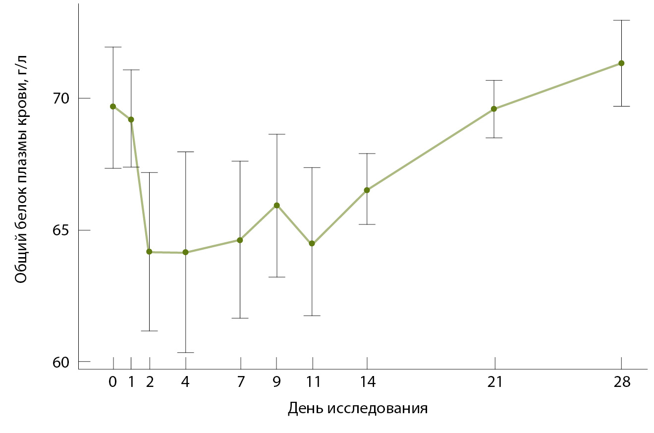 Визит 3 День 28 (± 1) | 3 | 1,57 | 1,53 | 0,35–2,72 | 0,48 | 1,04 | 1,99 | 1,31 | 1,78 | 0,47 | |||