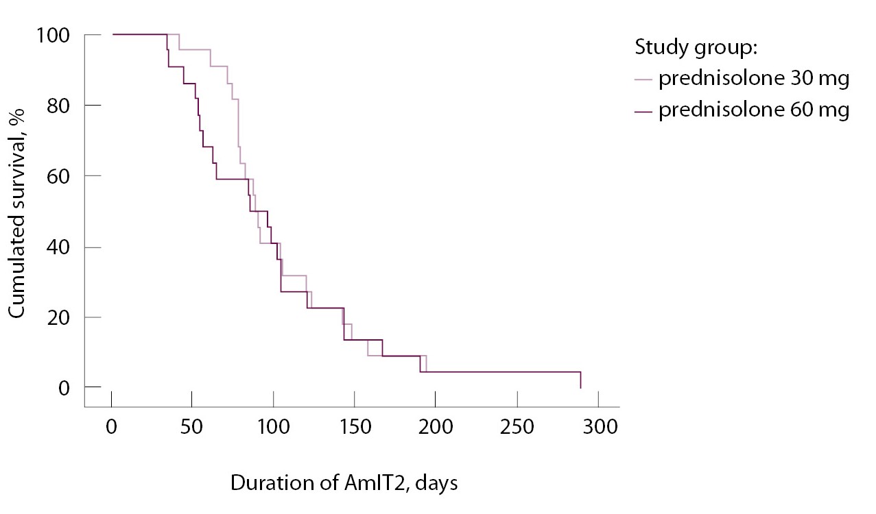 Цель настоящей работы – оценить эффективность терапии разными стартовыми дозами преднизолона у пациентов с АмИТ2.