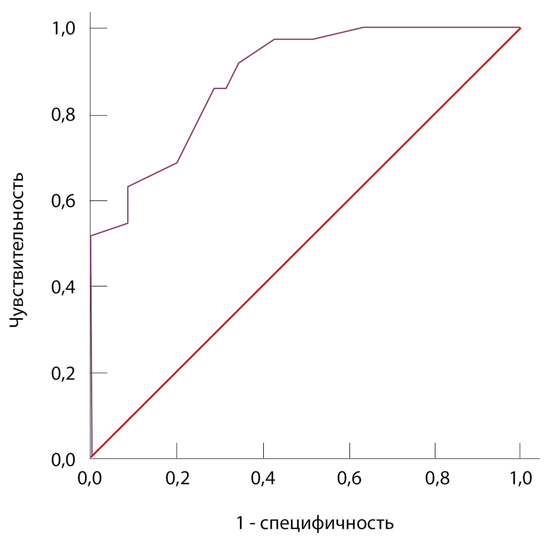 Для оценки чувствительности и специфичности опросника, а также для выбора порогового значения, позволяющего определить наличие суставного синдрома или повышенный риск его развития и направить пациента на дальнейшую консультацию к врачу-ревматологу, использовали ROC-анализ.