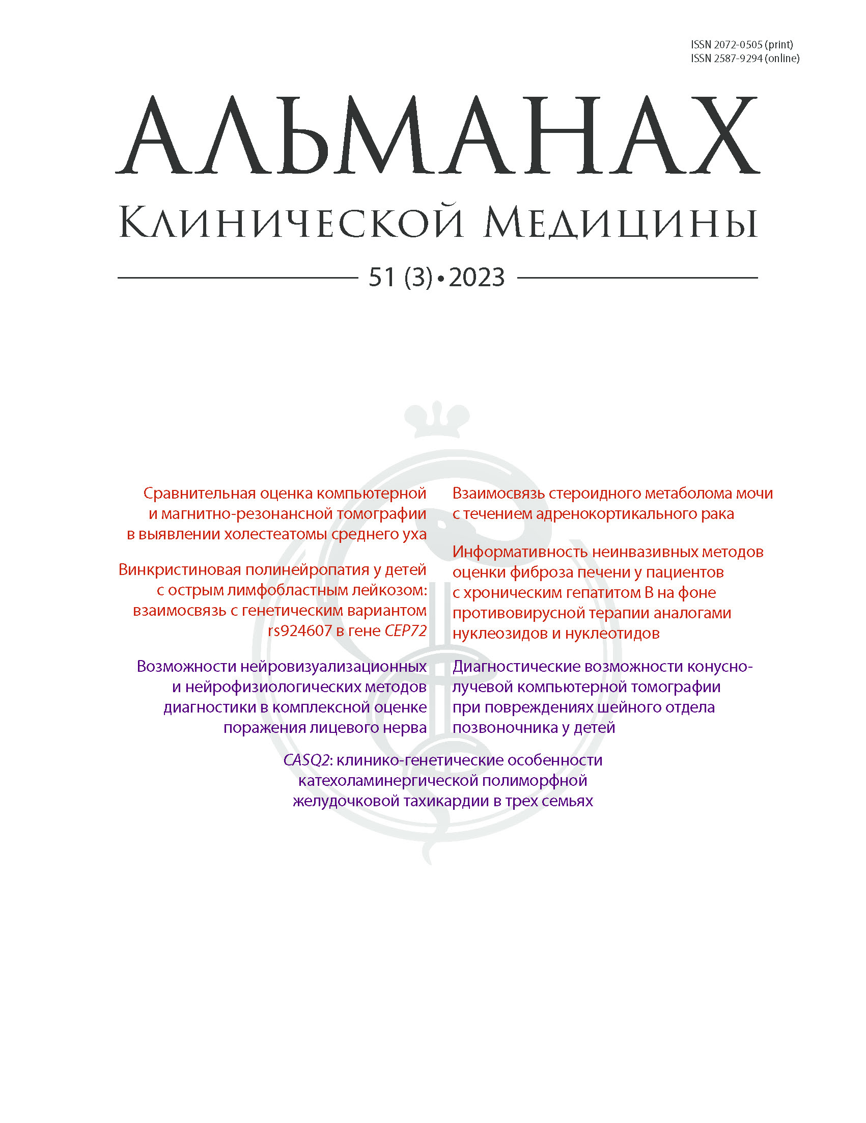 Материал и методы. В одноцентровом когортном исследовании участвовали 199 детей в возрасте от 3 до 17 лет с впервые установленным острым лимфобластным лейкозом, которые получали химиотерапию по протоколу ALL-MB 2015. Всем пациентам выполнили генотипирование однонуклеотидного варианта rs924607 в гене CEP72 методом полимеразной цепной реакции в режиме реального времени с последующей оценкой результатов методом аллельной дискриминации и провели сравнительный анализ частоты встречаемости, клинических признаков винкристиновой полинейропатии в зависимости от носительства изучаемого генетического варианта.