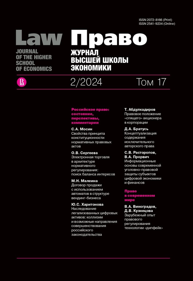 - 栏目: Russian Law: Condition, Perspectives, Commentaries