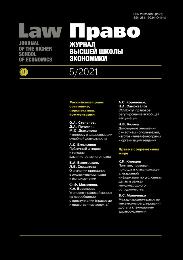 - Savoshchikova E.V., Gurnaya L.E. (2018) Health Protection and Medical Care as a Constitutional Right of Individuals. Prodvinutaya nauka = Advanced Science, no. 2, pp. 217-221.