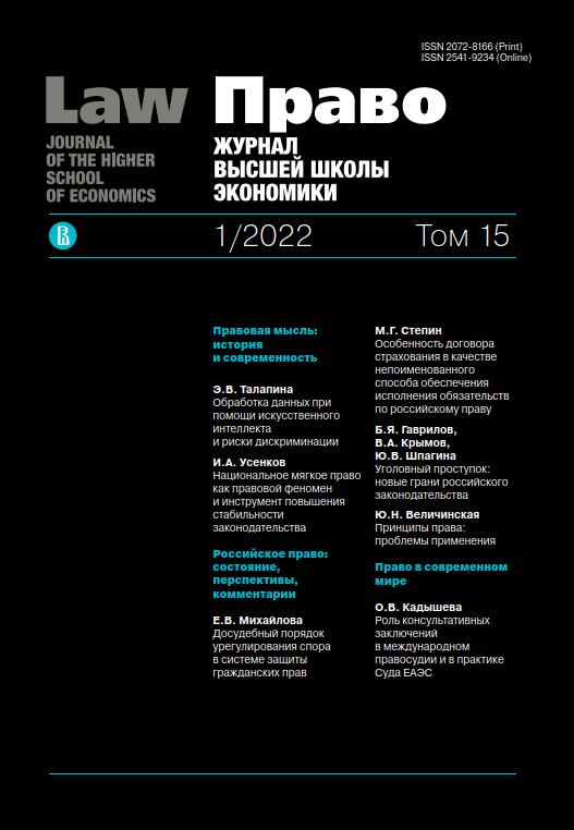The article examines insurance as a way to ensure the fulfillment of obligations under Russian law. The author explores the classification of security structures, different points of view of scientists are compared, using the system and functional methods of interpretation of legal norms, which further helps to unlock the potential of using insurance as a security structure of the main obligation. An insurance contract can act as an unnamed way of securing the main obligation, corresponding to the signs of accessory (system), which are formulated by the legislator in Article 329 of the Civil Code of the Russian Federation. However, the author draws attention to the fact that in the past, in such documents that were in force before the adoption of the modern Civil Code of Russia, there was no indication of signs of accessory in the legislation. The article proves that accessory, (system) acting as a system method can only be applied to unnamed ways of ensuring the fulfillment of obligations, and also the use of such legislative signs of accessory specified in Article 329 of the Civil Code of the Russian Federation (termination, connectedness, invalidity), which must correspond to the unnamed method of securing the obligation, is argued. It is not possible to apply accessorism to all named obligations, since all seven named ways of ensuring performance of obligations (forfeit, surety, deposit, security payment, independent guarantee, retention, pledge) cannot be reduced to a single feature, and this contradicts the principle of consistency. The article concludes that it is possible to use an insurance contract as a method of securing the performance of an obligation. The author also takes into account the fact that the insurance contract has certain features that are inherent in this obligation, which is expressed in the mandatory presence of specific risks from which insurance is carried out. As a result, a new concept is introduced-conditional accessory. A conditional-accessory method of securing the performance of obligations is an insurance contract that is concluded as a method of securing the performance of obligations not against all existing risks of non-performance (improper performance), but only against those specified in the insurance contract.