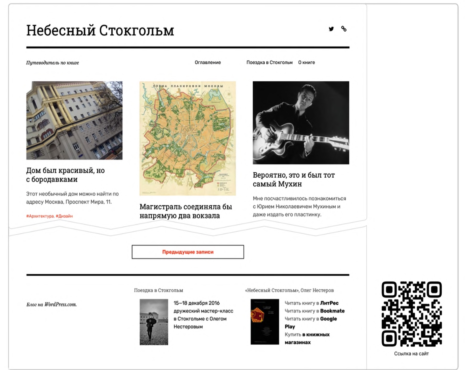Вторым значимым медиаканалом проекта стал мультимедийный сайт «Небесный Стокгольм – Путеводитель по книге», до сих пор доступный в сети по адресу: https://nebesny.ru/ (рис. 1).