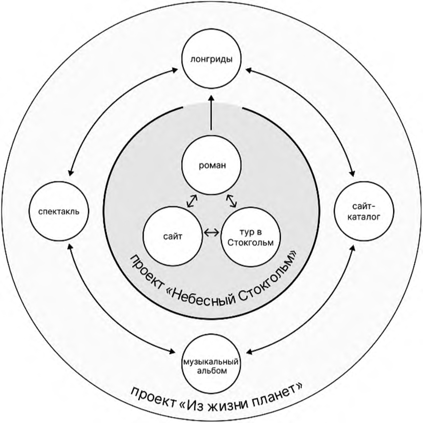 Рис. 2. Схема трансмедийного проекта «Небесный Стокгольм»