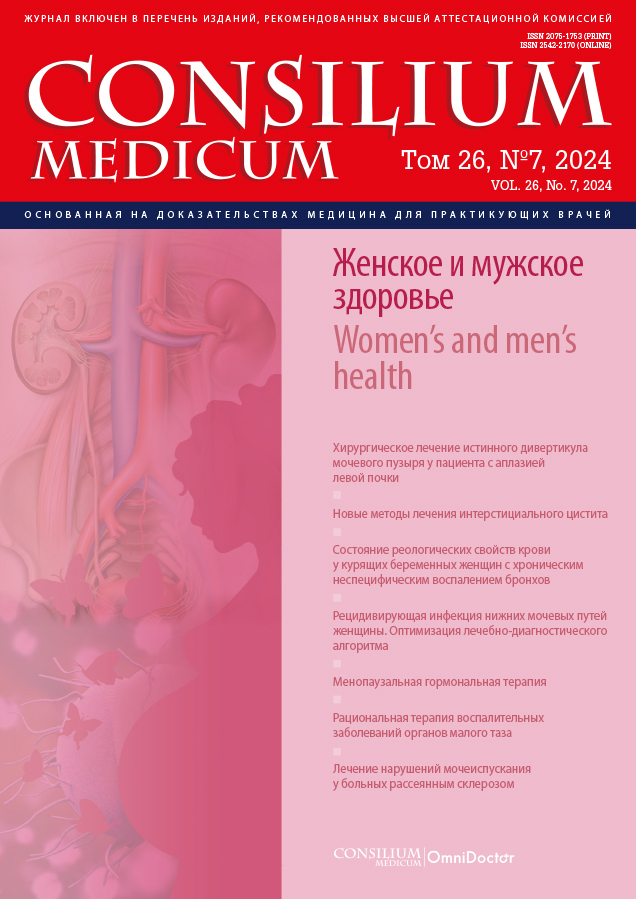 Том 26, № 7 (2024): Женское и мужское здоровье