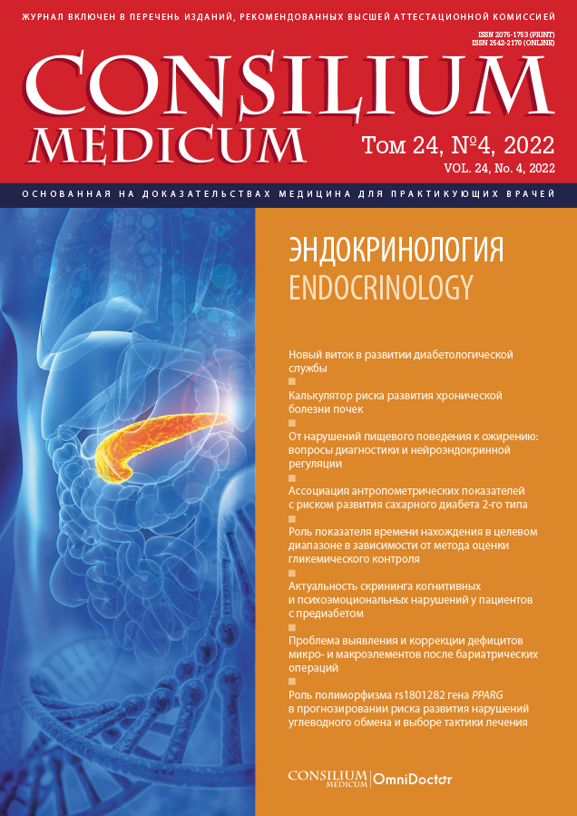 Изучение вопросов патогенетического взаимодействия в развитии и прогрессировании когнитивных, психоэмоциональных и сосудисто- метаболических нарушений является актуальнейшим направлением современных клинических исследований. За последнее десятилетие в научной литературе наблюдается всплеск интереса и подробное обсуждение текущих тенденций в распространенности заболеваний и состояний, связанных с инсулинорезистентностью и метаболическим синдромом, с особенно пристальным фокусом на глобальные проблемы ожирения и сахарного диабета (СД) 2-го типа. Предложенные экспертами модели взаимодействия нейрогуморальных, метаболических, социальных и психоэмоциональных факторов являются важными в понимании процессов, приводящих к увеличению распространенности данных состояний, ассоциированных с инсулинорезистентностью, во всем мире. Механизмы реципрокного развития таких распространенных психоэмоциональных расстройств, как тревога и депрессия, у пациентов с ожирением оцениваются с позиции их социально-психологической взаимосвязи, а также как ключевые триггеры развития нарушений пищевого поведения. Таким образом, современные клиницисты постепенно погружаются в необходимость разбираться в тонкостях процессов формирования психоэмоциональных нарушений и овладевать оптимальными навыками проведения скрининга для их выявления у пациентов с ожирением и СД. Вопросы изучения формирования нейронального повреждения у пациентов с инсулинорезистентностью и СД также являются приоритетными для современных специалистов-диабетологов. Описанные в литературе возможные варианты развития цереброваскулярных осложнений, включая когнитивные нарушения у пациентов с СД, требуют к себе дополнительного внимания. Ряд диагностических тестов для раннего выявления когнитивных нарушений включает скрининговые шкалы: MMSE (Mini-Mental State Examination), Монреальскую шкалу оценки когнитивных функций (MoCA) и Mini-Сog-тест. Таким образом, когнитивные и психоэмоциональные нарушения наряду с развивающимися сосудистыми и метаболическими осложнениями СД и ожирения постепенно становятся новой терапевтической целью для улучшения состояния и прогноза пациентов.