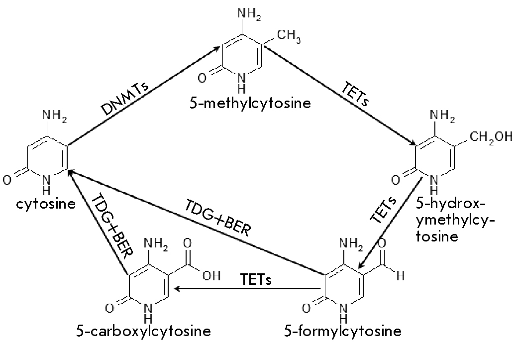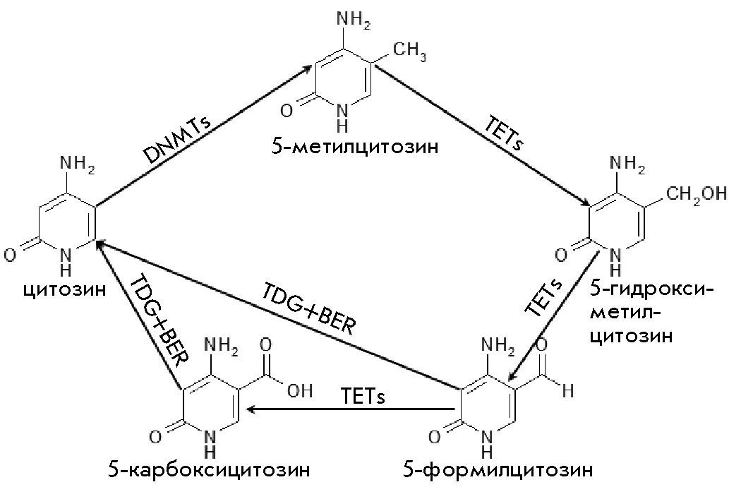 Рис. 1. Схема метилирования и деметилирования цитозина