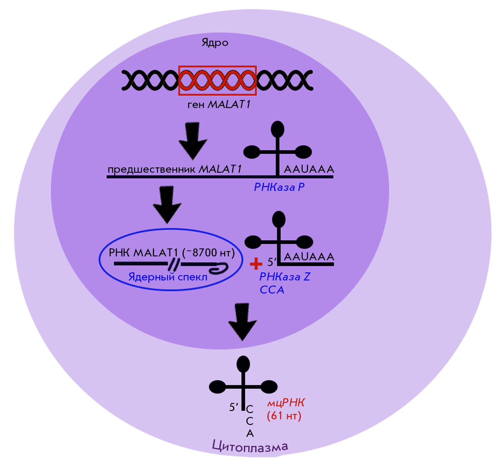Рис. 1. Схема синтеза длинной некодирующей РНК MALAT1 в клетке