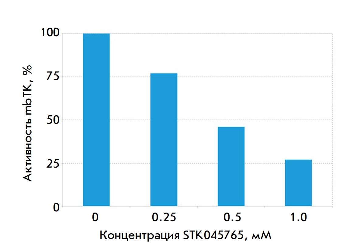 Fig. 3. Effect of the STK045765 inhibitor on the catalytic activity of mbTK