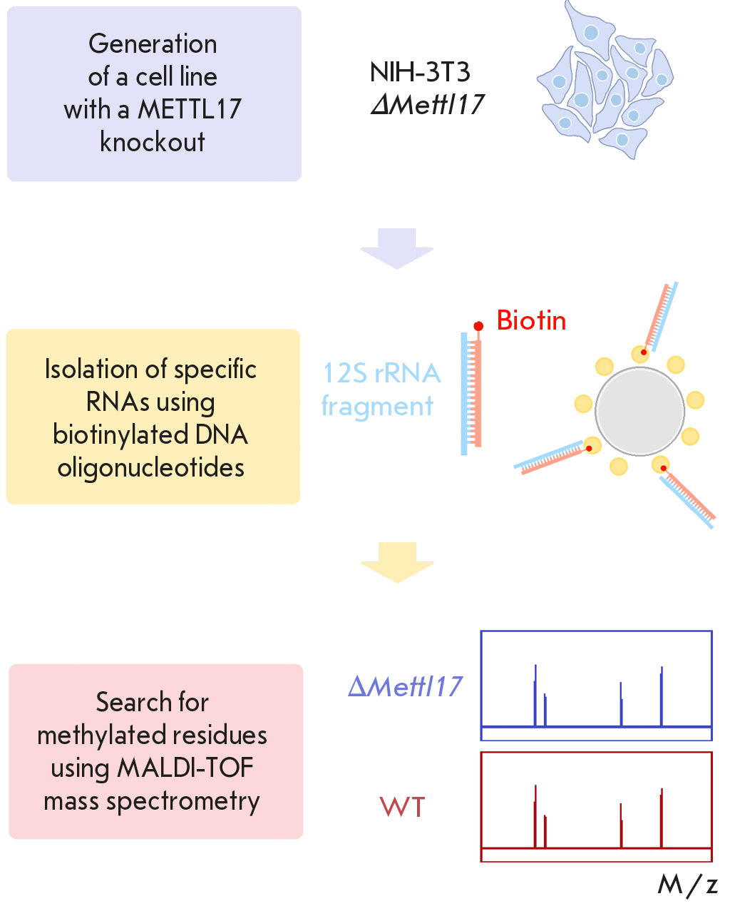 Fig. 1. Diagram of the search for the methylation target of the METTL17 mitochondrial factor