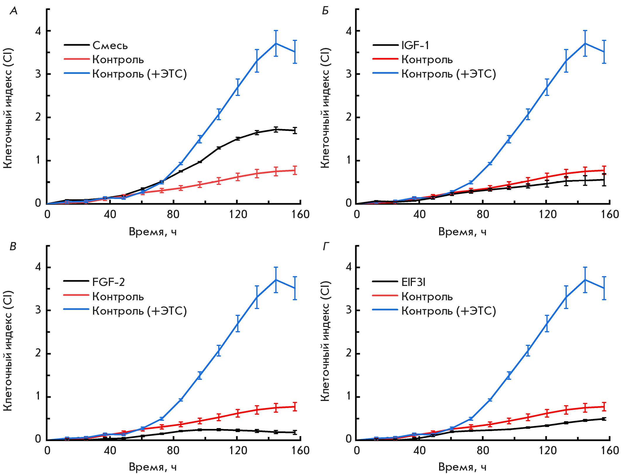 Cell proliferation in the basic serum-free medium was studied using the xCelligence RTCA DP cell analyzer, which enables to assess the viability of cell cultures in real time without additional markers and labels.