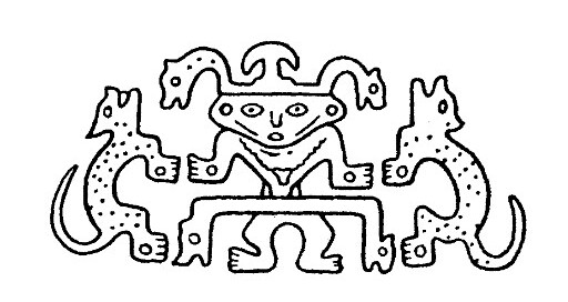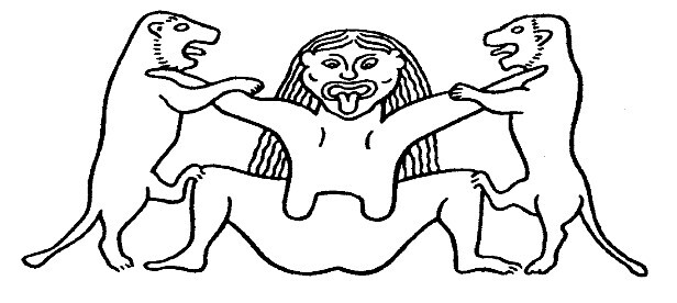 Социальная семантика трехчастной композиции. Так называемая трехчастная композиция, в которой главную женскую фигуру удерживают по обеим сторонам две второстепенные, имеет крайне широкое распространение в традиционном декоративно-прикладном искусстве. Многие исследователи обращались к этому орнаментальному мотиву с целью его интерпретации. Центральный женский персонаж обычно связывают с образом Великой Богини, Матери Мира, Владычицы зверей и людей. Она в разные времена и в разных культурах изображалась по-своему: крылатой, рогатой, змееногой, нередко в позе роженицы или же душащей животных и птиц, находящихся по обе ее стороны (рис. 1).
