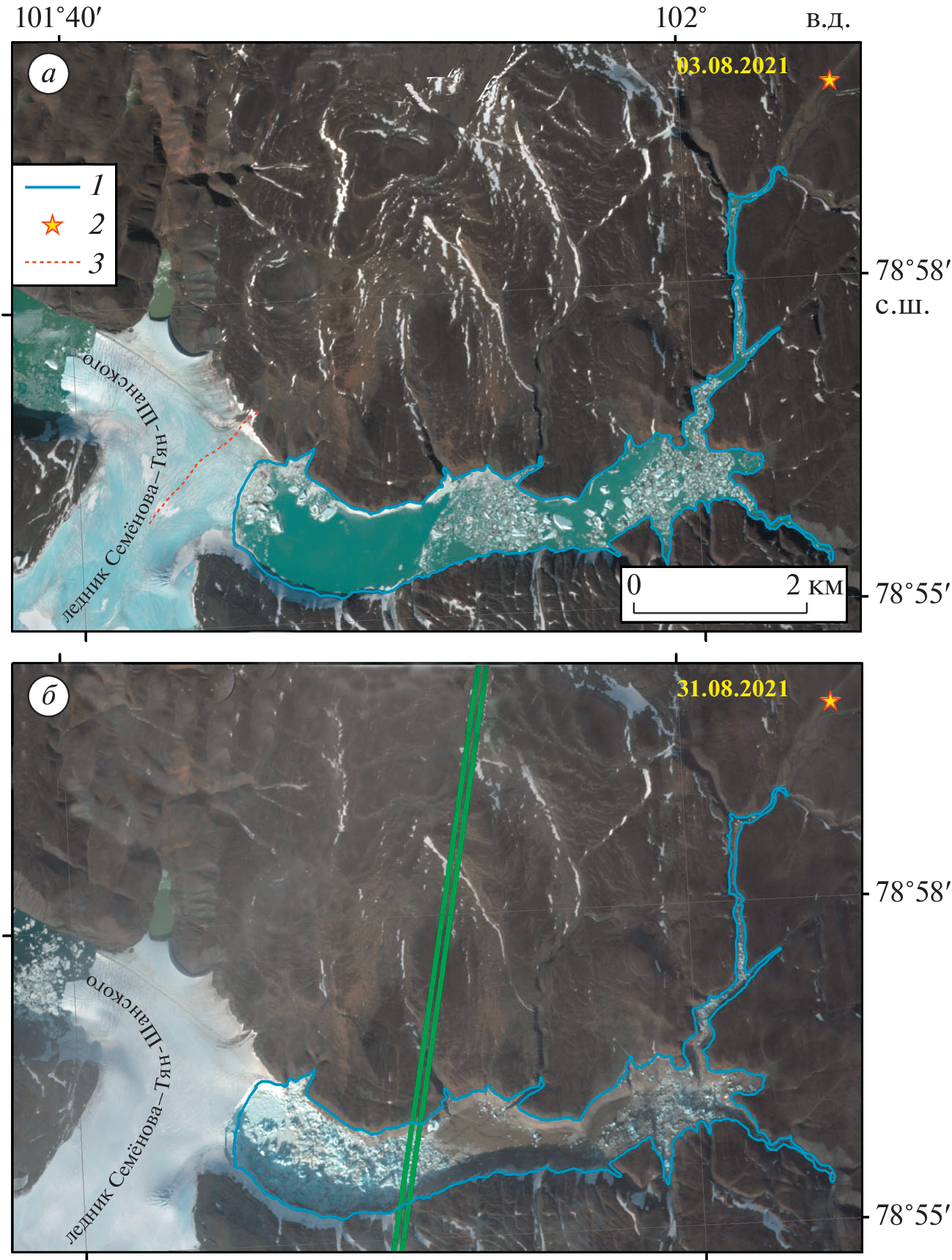 Прорыв ледниково-подпрудного озера Спартаковское и изменения выводного ледника купола Семёнова–Тян-Шанского в 2021 г. (Северная Земля)
