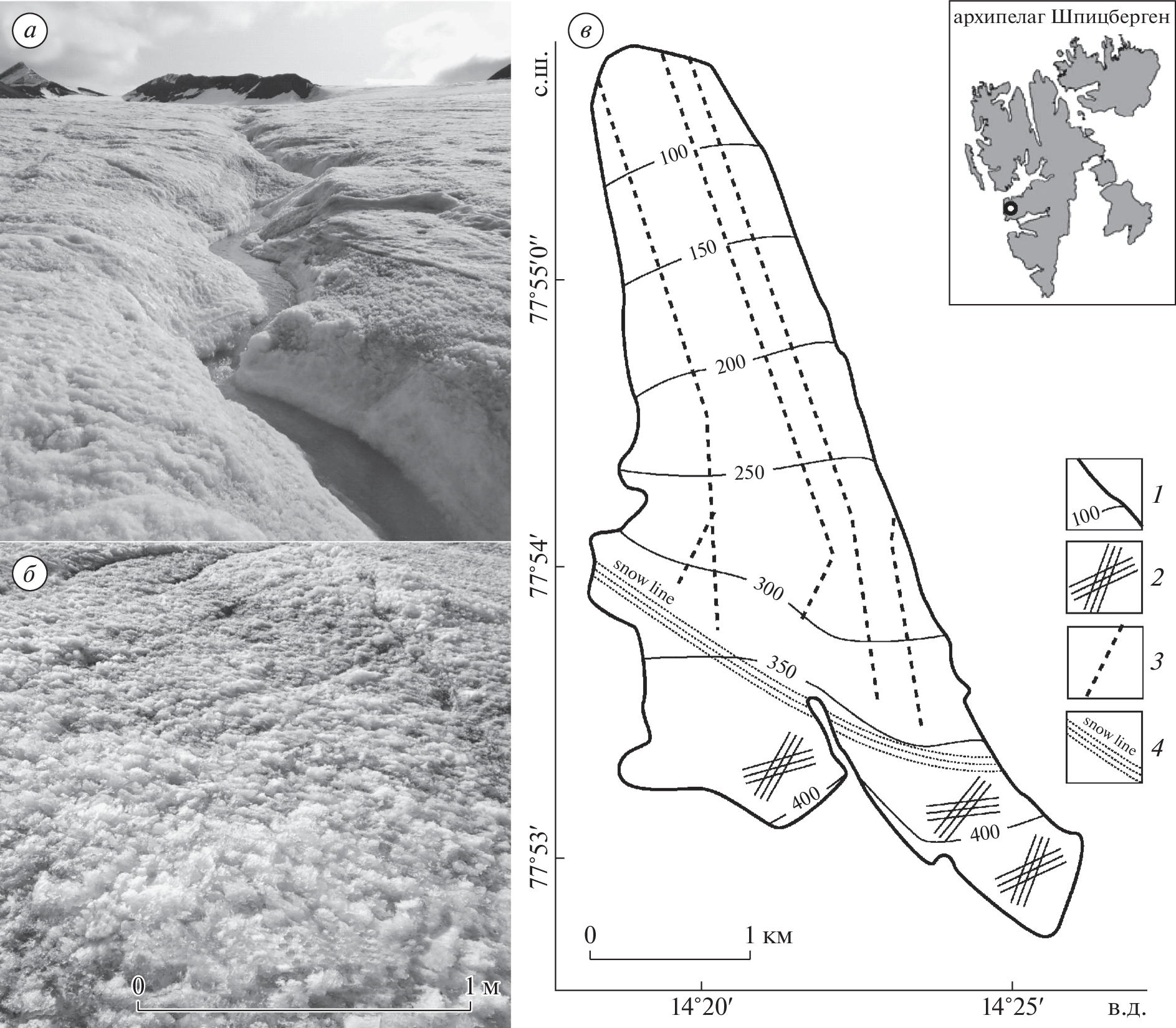 - Соловьянова И.Ю., Мавлюдов Б.Р. Некоторые особенности распространения поверхностных водотоков на ледниках о. Западный Шпицберген // Комплексные исследования природы Шпицбергена. 2004. Вып. 4. С. 216–229.