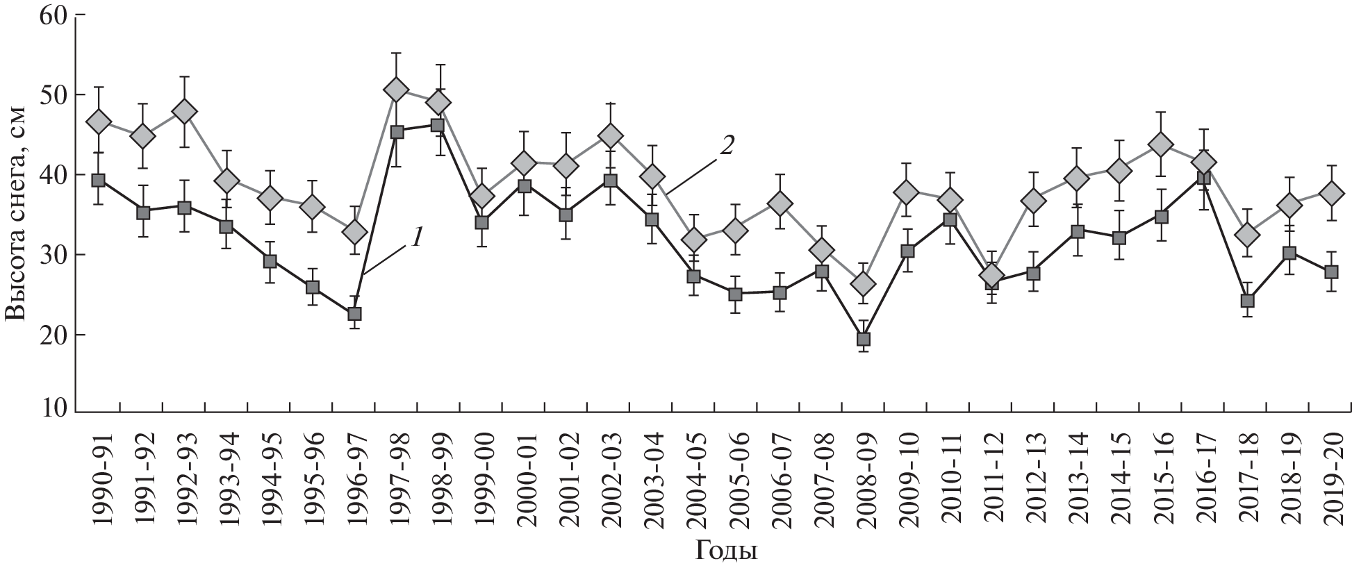 - Kunkel K.E., Robinson D.A., Champion S., Yin X., Estilow T., Frankson R.M. Trends and extremes in Northern Hemisphere snow characteristics // Current Climate Change Report. 2016. V. 2. P. 65–73.