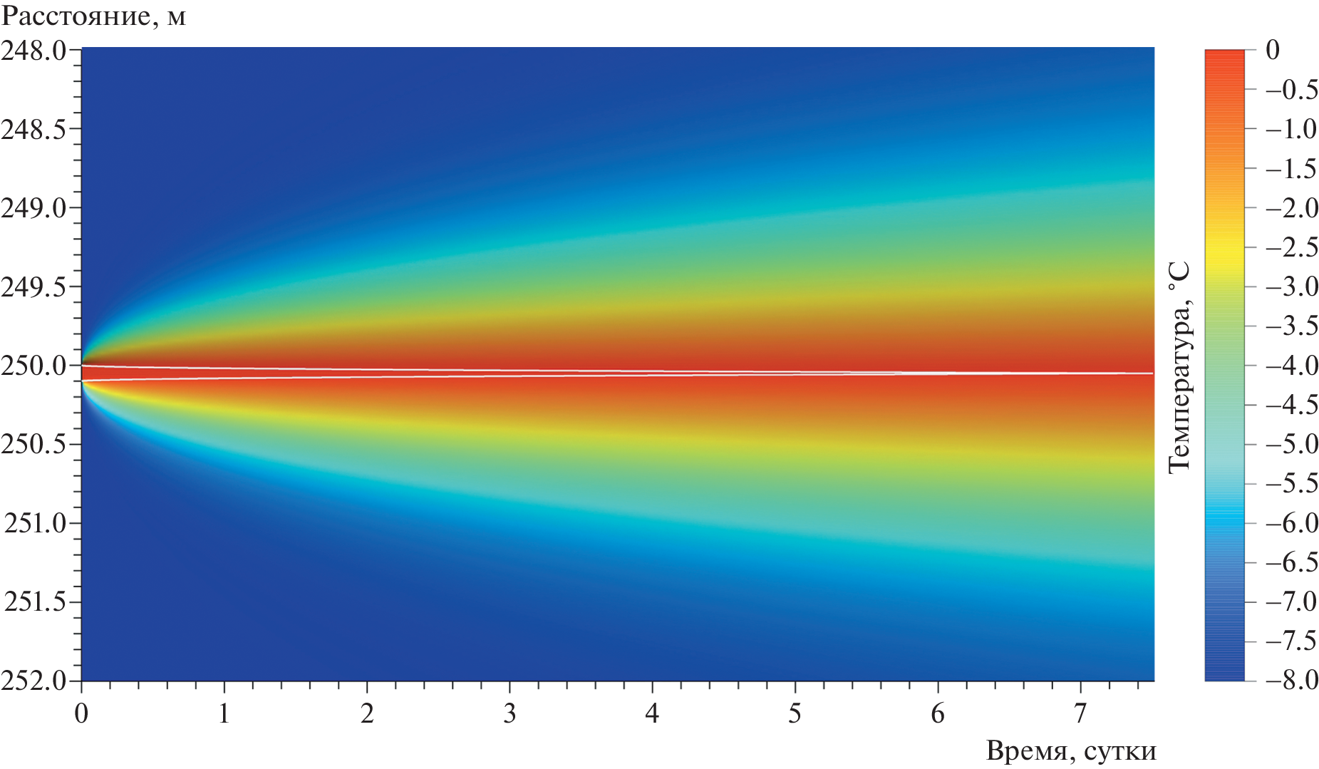 This article presents a numerical solution of the one-dimensional Stefan problem with two phase transitions, which is implemented on a non-uniform grid. The system of equations is written in a general form, i.e. it includes not only conductive, but also convective and dissipative terms. The problem is solved numerically by the front-fixing method on a non-uniform grid using an implicit finite-difference scheme, which is implemented by the sweep method. This algorithm can also be used to create more complex mathematical models of heat and mass transfer, as well as to describe glacial and subglacial processes. The mathematical apparatus proposed in the article was used to solve a specific problem of water freezing in a glacial crevasse. The presence and progression of crevasses, in turn, is a demonstrative factor indicating the dynamic activity of the glacier. Crevasses formed in one way or another can not only expand, but also decrease in size until they completely disappear. One of the reasons for their closure is the freezing of near-surface meltwater in the crevasse. Such a process was observed on glaciers near Mirny and Novolazarevskaya stations (East Antarctica). This process is modeled as an example of solving the Stefan problem. It is believed that all media are homogeneous and isotropic. The temperature of the water in the crevasse corresponds to the melting temperature of the ice. Modeling has shown that for the coastal part of the cold Antarctic glacier with an average temperature of –10°C and below, crevasses 5–10 cm of width freeze in less than a week. Wider ones freeze a little longer. 30 cm wide crevasses close in about two to three weeks, depending on the temperature of the glacier.