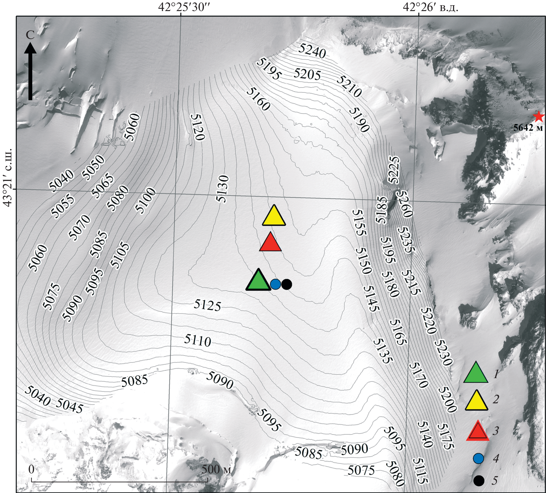 - Lavrentiev I.I., Mikhalenko V.N., Kutuzov S.S. Ice thickness and bedrock relief of the western Elbrus plateau. Led i Sneg. Ice and Snow. 2010, 2 (110): 12–18 [In Russian].