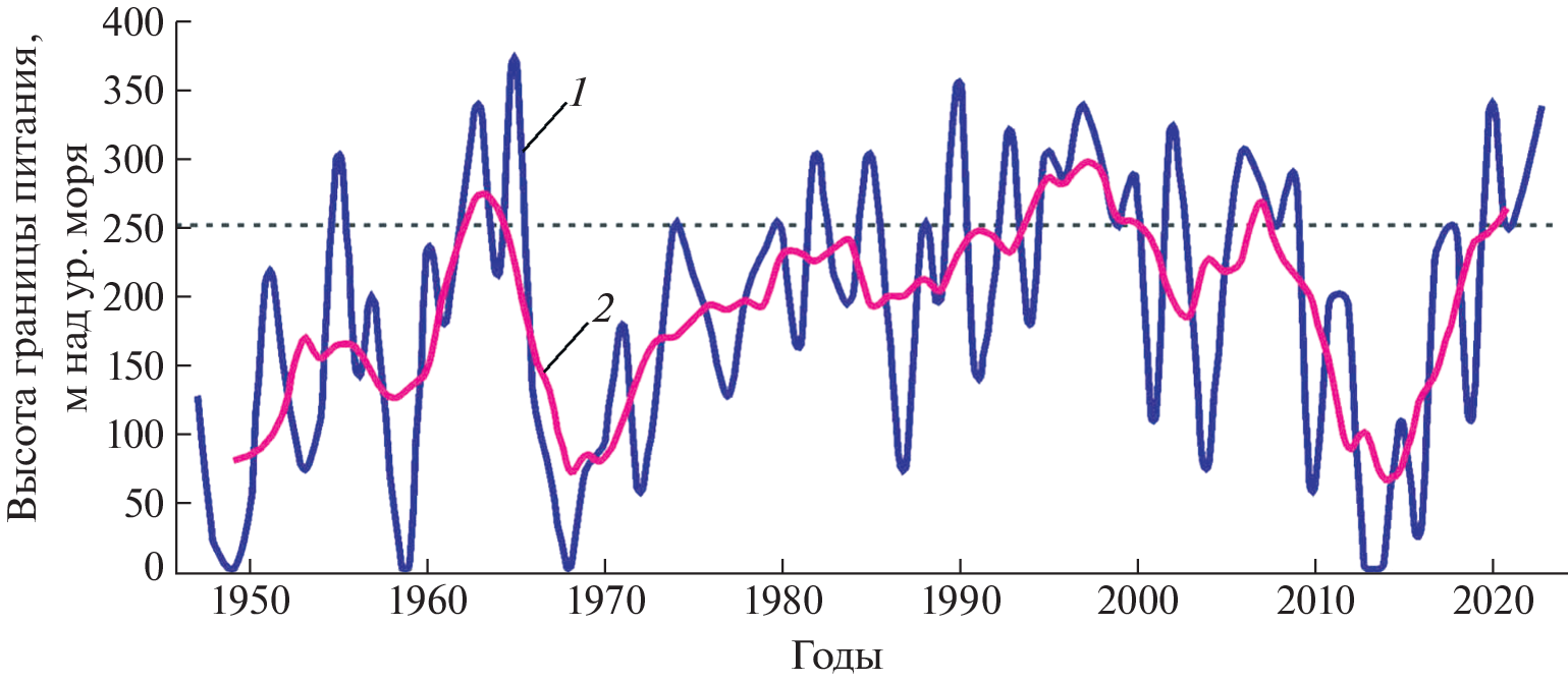 By cleaning up the strong interannual fluctuations in ELA using five-year moving averages, two complete periods of ELA change (from minimum to minimum) were identified for approximately 20 years (1947–1968) and 45 years (1968–2013). From 2014 to present time, the third period has been continuing. At the apogee of each period, the ELA was higher than the Bellingshausen Ice Dome height, which indicates that in these years the ice dome completely lost accumulation area. For the Bellingshausen and Warsaw ice domes, a pattern of higher ELA position on the western and southern slopes compared to the eastern slopes was revealed, which is probably applicable to the entire King George Island.