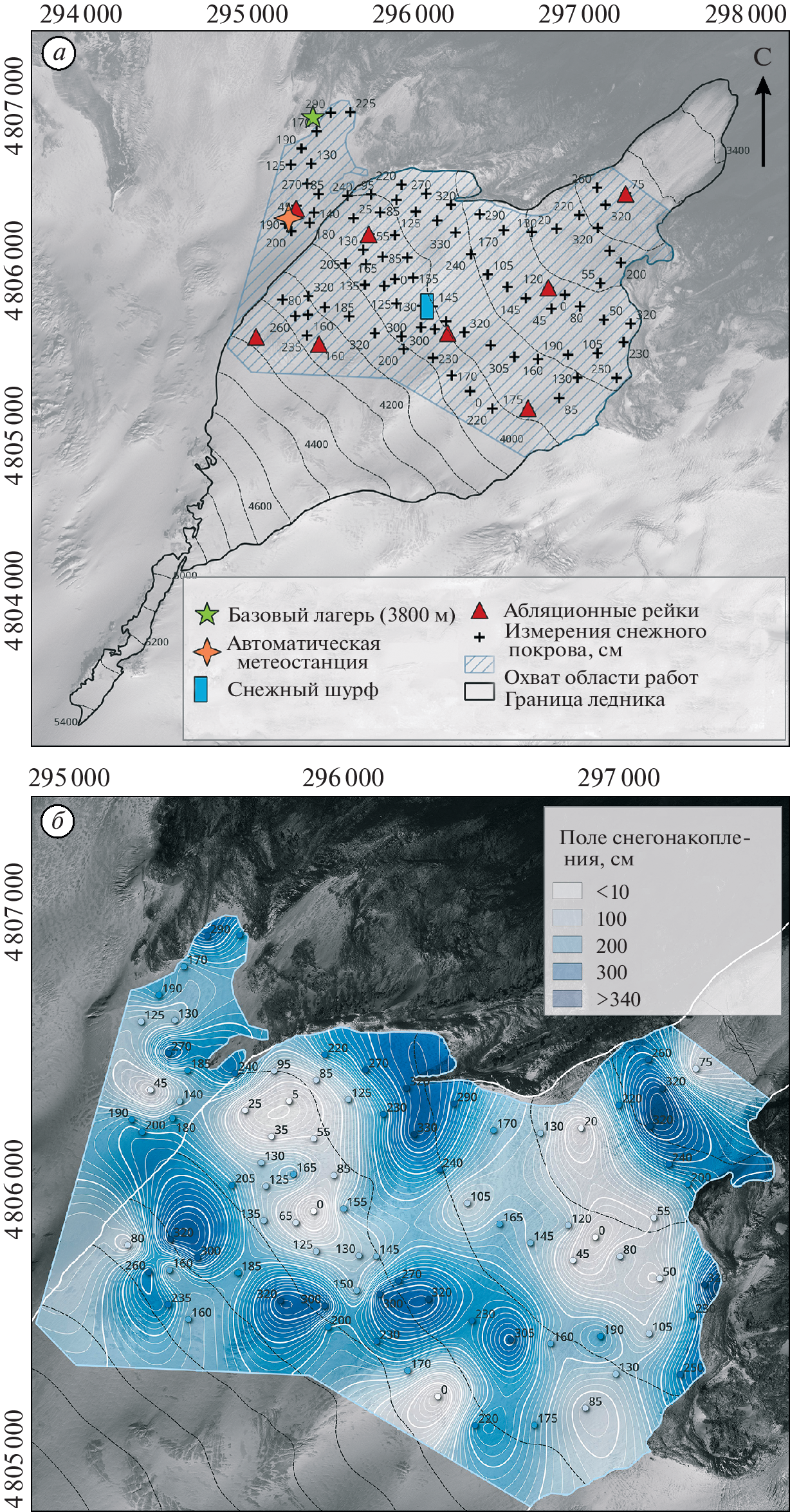 In June 2023, mass-balance and meteorological observations on Elbrus were expanded: monitoring of the Mikelchiran glacier on the northern slope of the volcano was added to the permanent observations on the southern slope (Garabashi glacier). Such synchronized observations on the opposite macro-slopes of Elbrus have not been carried out before.