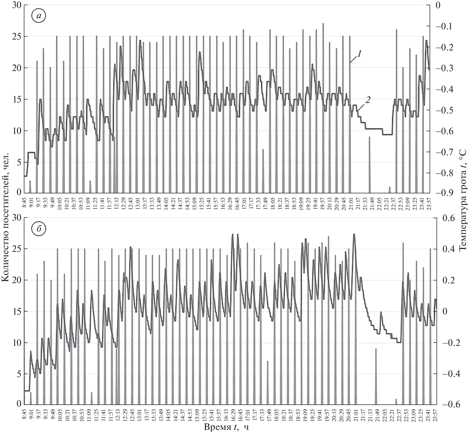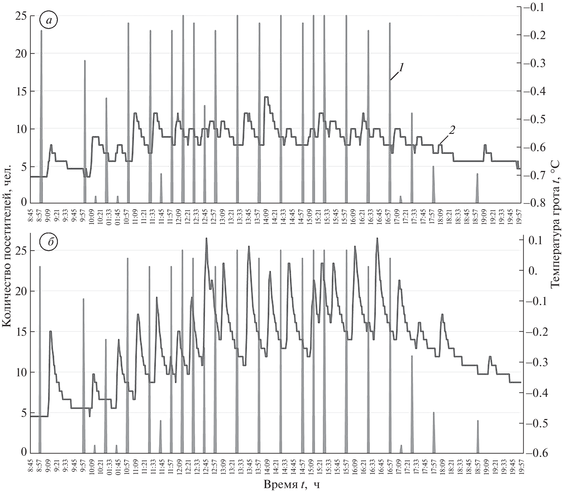 The Kungur Ice Cave is visited by thousands of tourists every year, so the question of anthropogenic influence on changing its state is acute. Snow and ice formations are the main attraction of the cave. From the moment of discovery and improvement of the cave, the thickness of glaciation began to depend not only on natural, but also on technical and anthropogenic conditions. First, this is a change in the temperature of the outside air, the annual rise of underground and surface waters (the Sylva River), the construction of inlet and outlet tunnels, artificial ventilation, and the number of tourists. To assess the impact of the flow of tourists on the microclimatic characteristics of the Cave, the staff of the Kungur Stationary Laboratory conducted research during the period of maximum anthropogenic load in the summer of 2022. The data analyzed in this article made it possible to clarify that the existing tourist load has an insignificant impact on the microclimate of the Cave. After the passage of each group of tourists, the air temperature in the grottoes slightly increases (by a maximum of 0.1–0.2°C) but is restored during the daytime within 4–12 minutes, and at night the temperature regime is completely restored. The maximum tourist load per day is 825–925 people or more, depending on the operating mode of the Cave. Thus, the visiting regulations and the allowed throughput of the cave are currently chosen correctly. The number of tourists is not so large as to limit the visit to the Cave to protect the ice formations, especially since the first-year ice is renewed every winter.