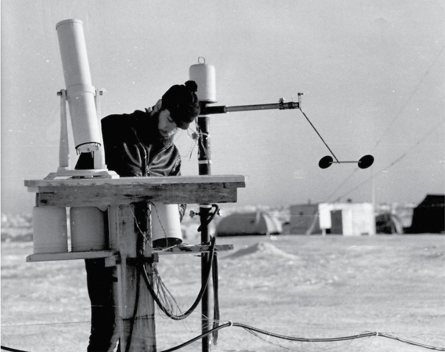 Рис. 5. Измерения спектральной плотности атмосферы на СП-22. Апрель 1974 г. Фото Н. М. Шестакова.