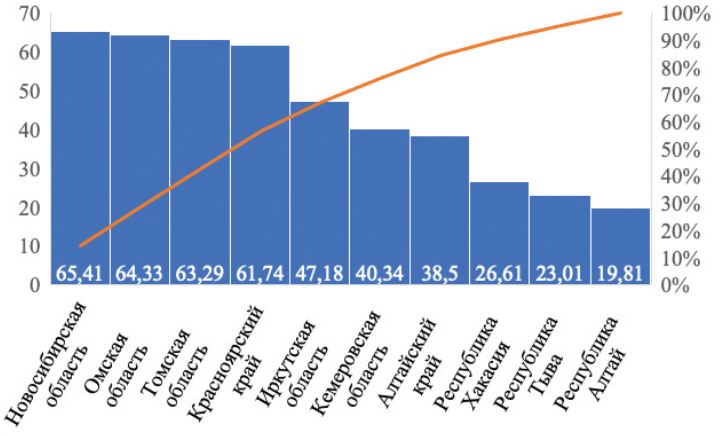 Кемеровская область | 1,339 | 55,5 | 0,828 | 56 | 3992 | 0,17 | 237 | 168 |