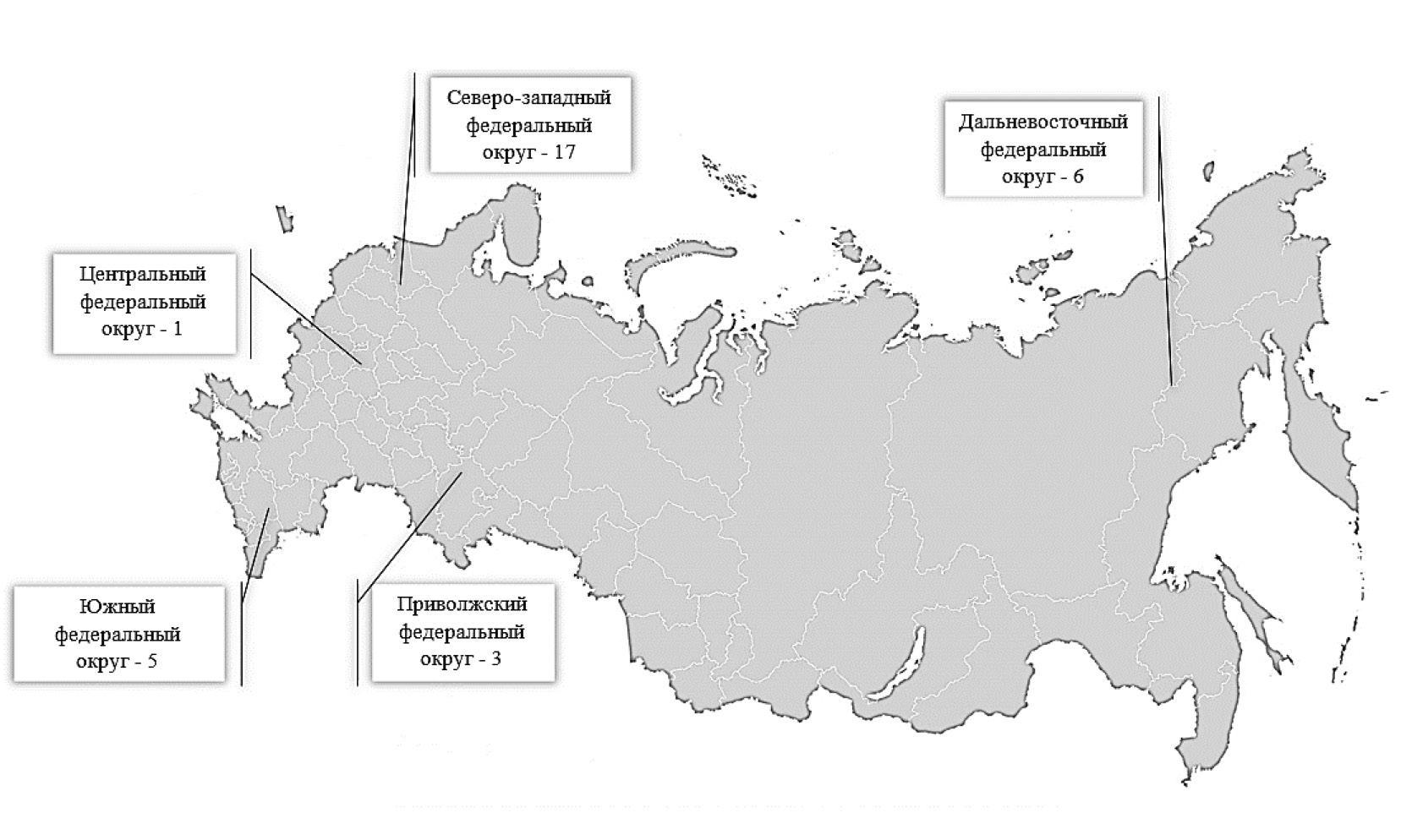 Производственные мощности крупнотоннажного судостроения России неравномерно распределены по федеральным округам (рисунок 1).