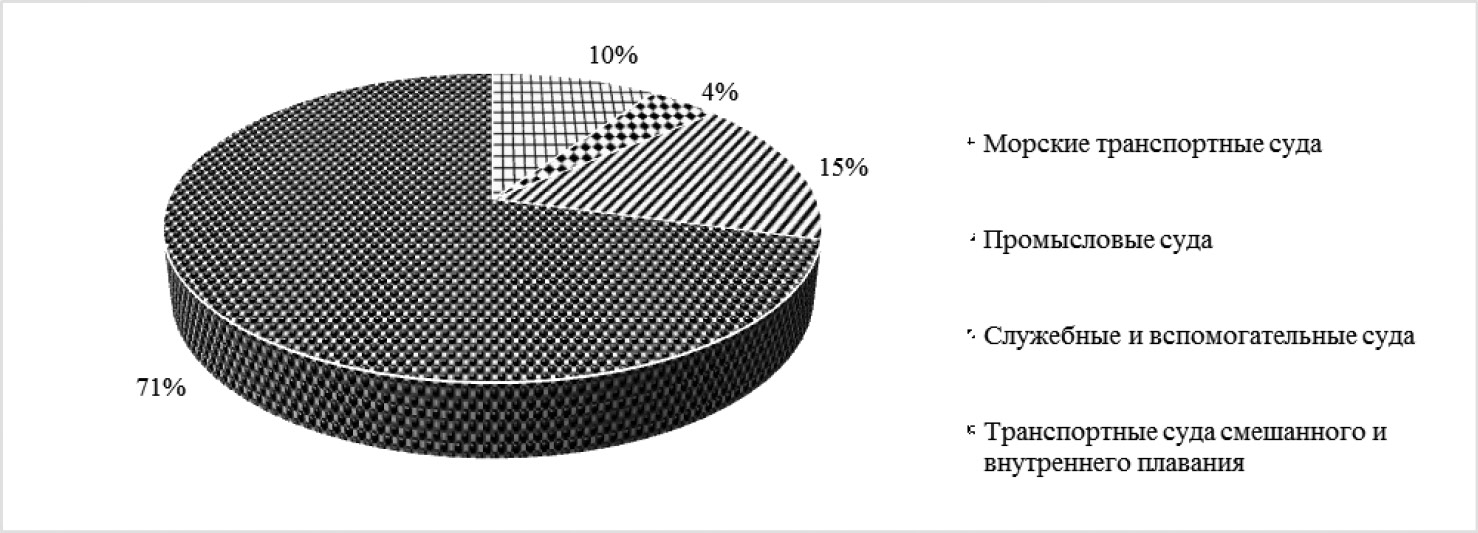 Количество промысловых судов в общей структуре можно охарактеризовать как крайне малое, так как их доля составляет всего 4% (3 ед.). Это обусловлено тем, что после распада СССР масштабные вложения в строительство рыбопромыслового флота не осуществлялись, поскольку отечественные предприятия выкупали суда за рубежом. Однако в последние годы были предприняты шаги, направленные на стимулирование строительства и обновления данной отрасли.