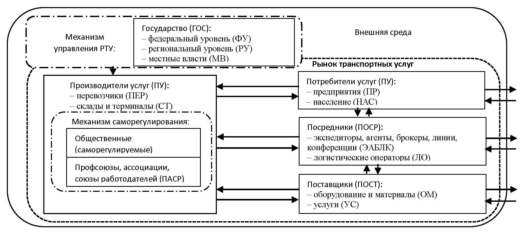 Рисунок 1. Схема взаимодействия субъектов рынка транспортных услуг