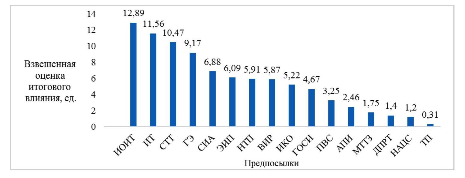 Рисунок 3. Взвешенная оценка итогового влияния предпосылок на инновационную трансформацию субъектов рынка транспортных услуг