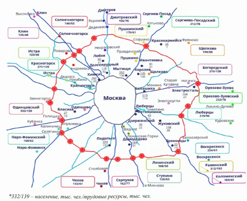 Рисунок 1. Карта-схема ЦКАД с учетом населения и трудовых ресурсов