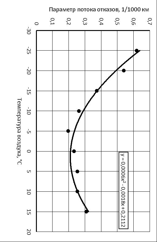 Далее установлено влияние температуры окружающего воздуха на параметр потока отказов (рисунок 3). На графике хорошо прослеживается увеличение количества отказов элементов топливной аппаратуры с понижением температуры воздуха.