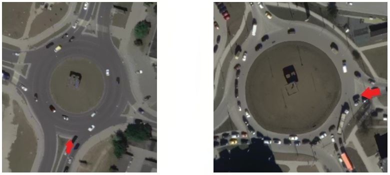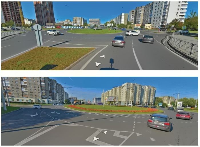 Рисунок 3. Кольцевые пересечения до изменения разметки: Гайдара-Челнокова (слева) и Гайдара-Горького (справа)