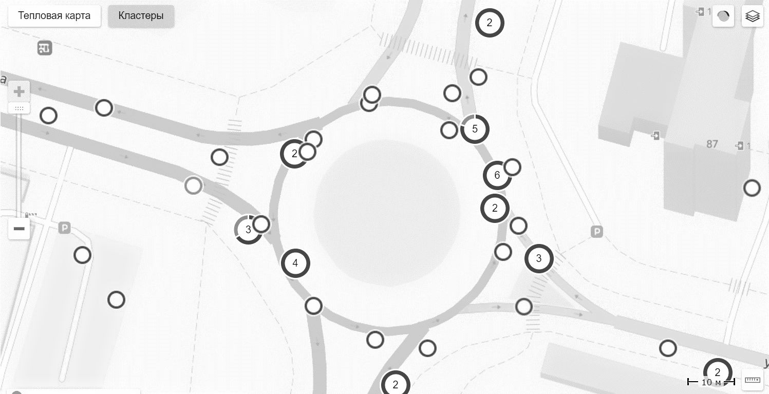 - определить местоположение дорожно-транспортных происшествий (ДТП) до и после внедрения новой схемы организации дорожного движения;