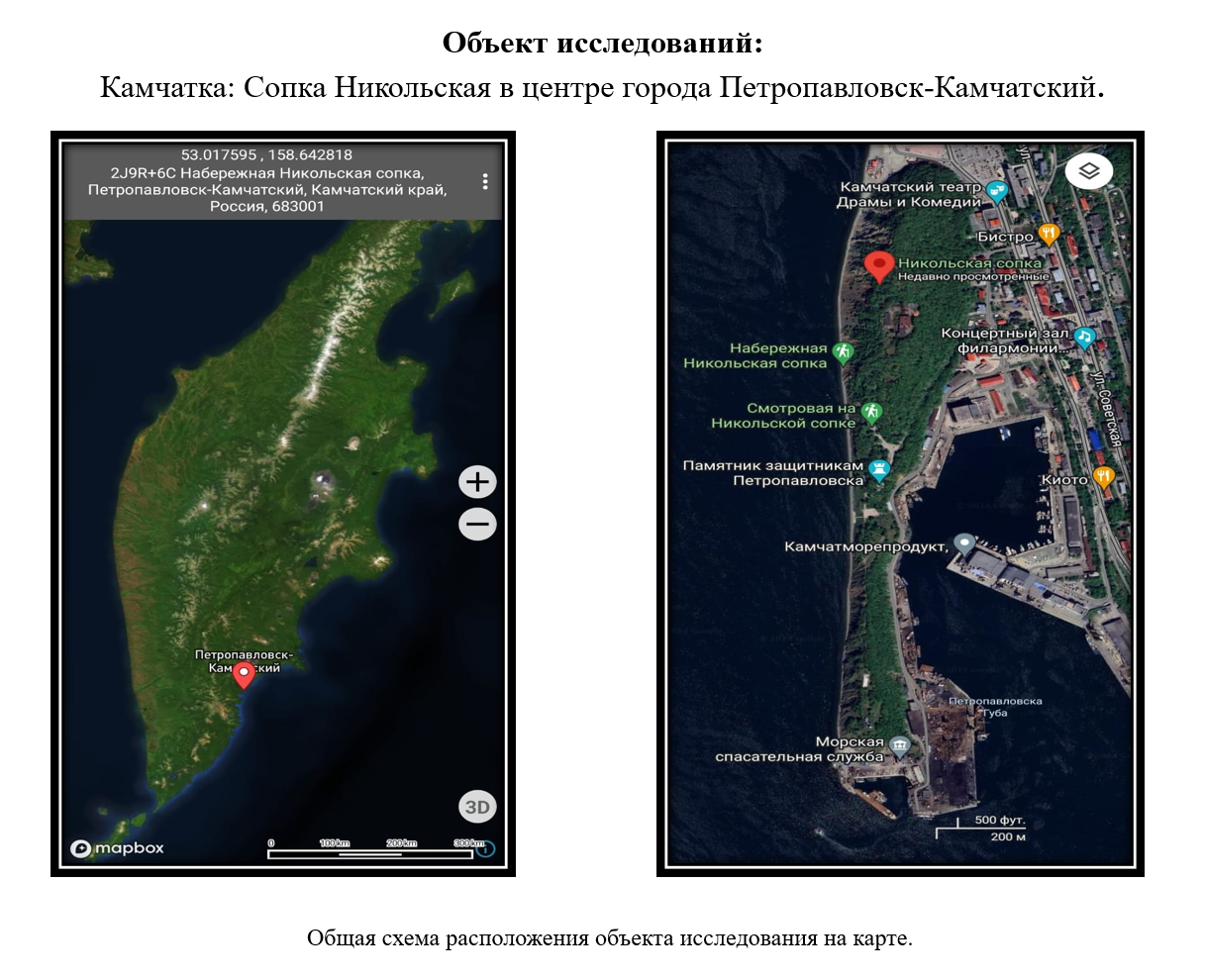 Рис. 1. Объект исследования на карте (Россия, Камчатка, город Петропавловск-Камчатский)