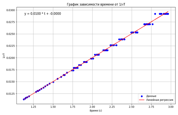 plt.title(’График зависимости времени от 1/f^(1/2)’)