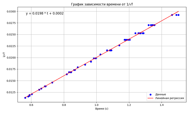 # Создаем дополнительную таблицу с временем t и 1/f^(1/2)