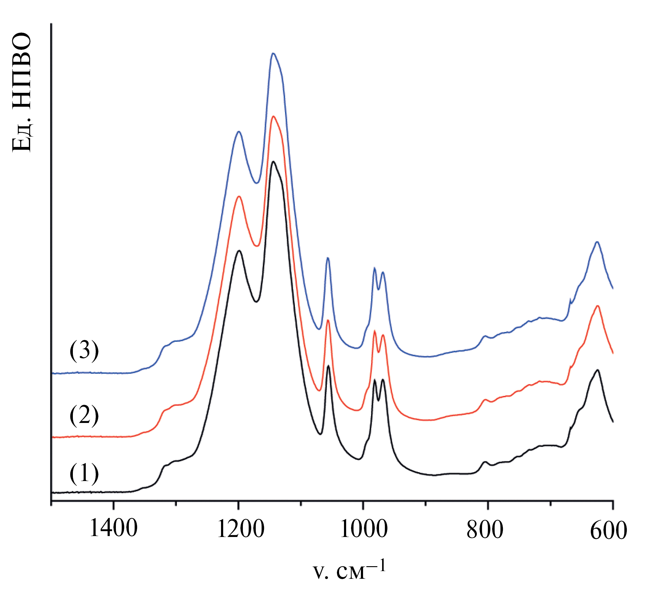 Рис. 2. ИК спектры Nafion-0 (1), Nafion-3.8 (2), Nafion-6.7 (3)