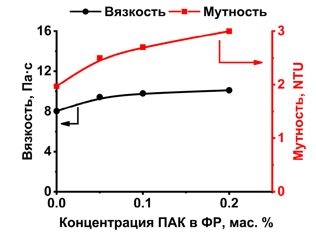Рис. 1. Зависимость вязкости и мутности ФР от концентрации ПАК.